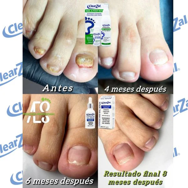 La solución completa para uñas y pies saludables, elimina infecciones en las uñas y pies causadas por hongos, bacterias y virus de ClearZal.